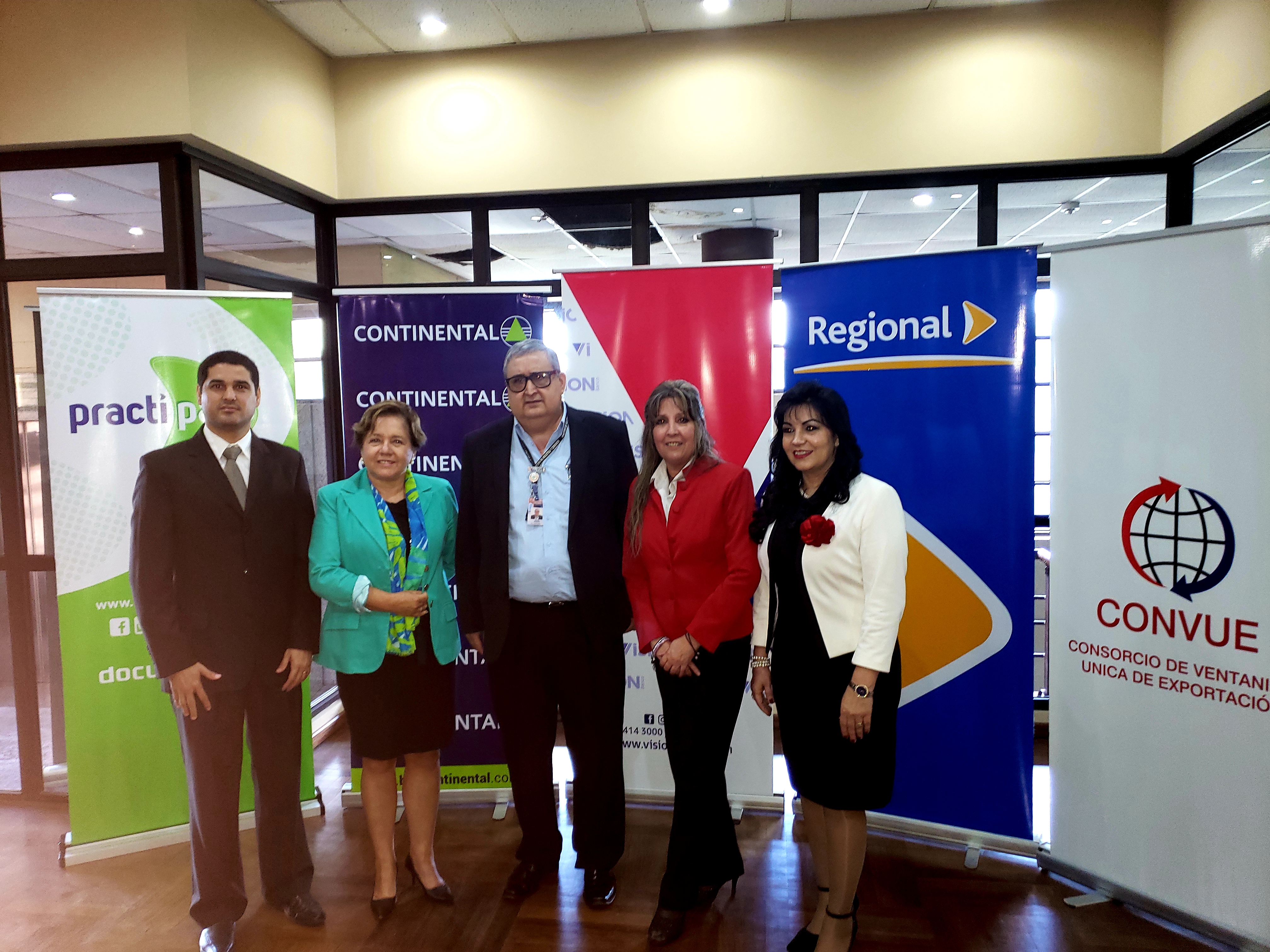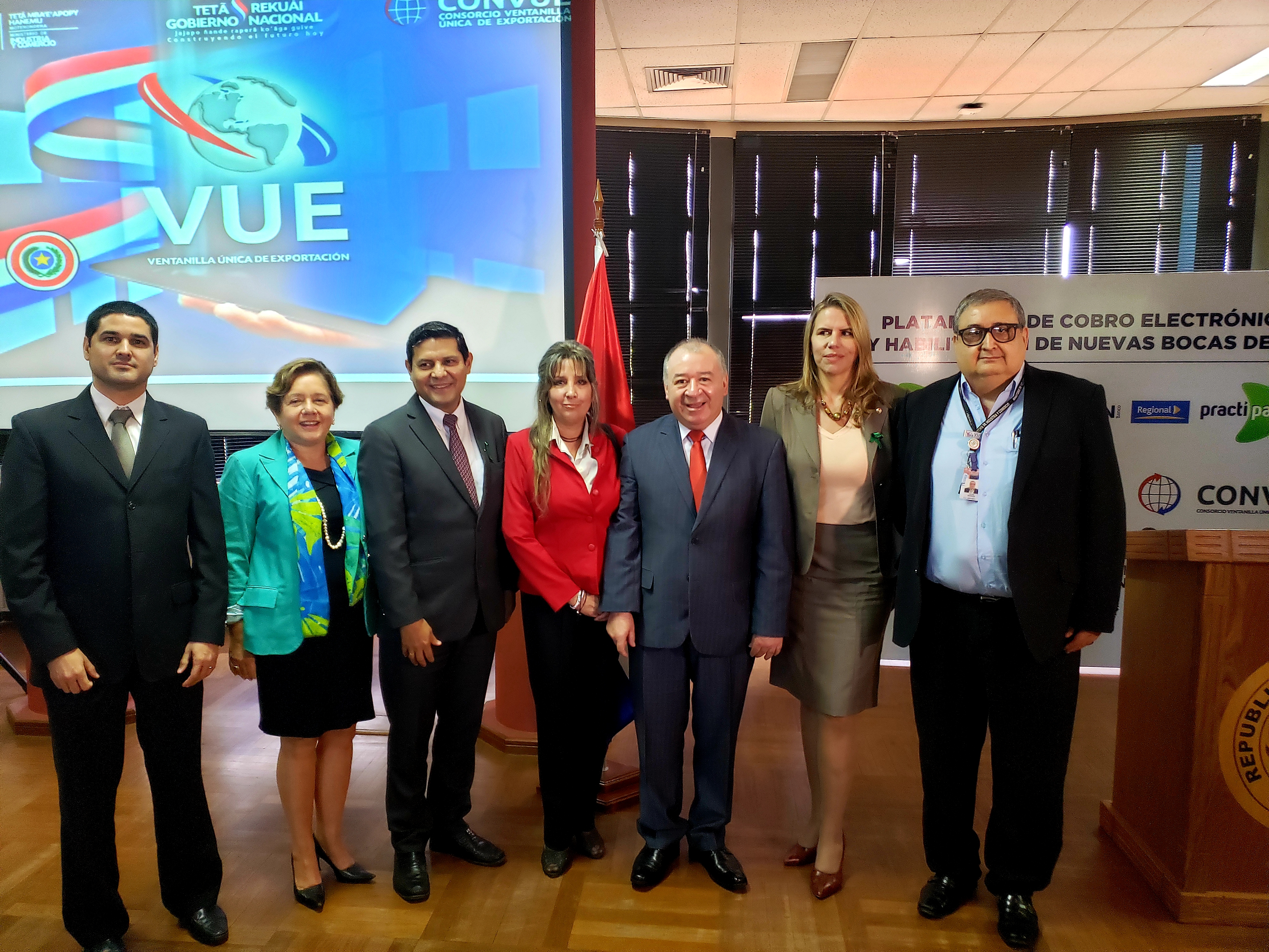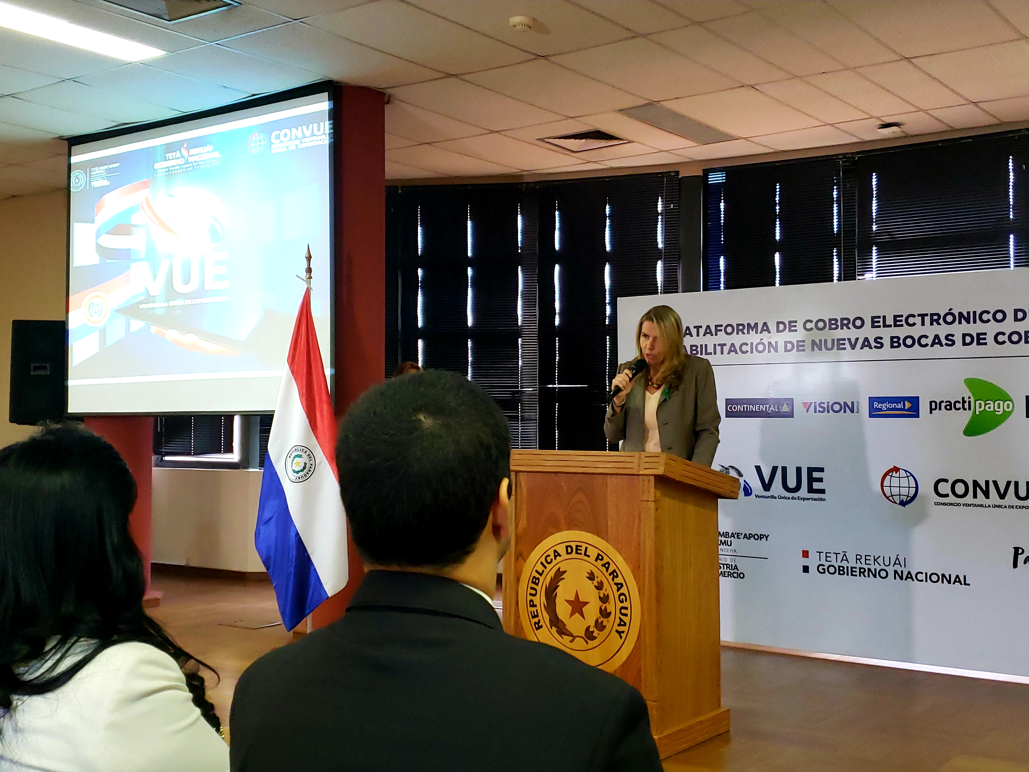 Luego, la presidenta de CONVUE, Magdalena Mendoza, indicó: "Les voy a presentar una exitosa implementación en Paraguay bajo la figura de alianza público-privada, entre la Ventanilla Única de Exportación (VUE) del Ministerio de Industria y Comercio y el Consorcio de Ventanilla Única de Exportación (CONVUE). Haciendo un poco de historia sobre la VUE, cabe destacar dentro del contexto nacional, que el Ministerio de Industria y Comercio, en cumplimiento a sus funciones que le fueron conferidas por Ley N° 904/63 y su modificación por Ley N° 2061/2006 tomó como tarea y misión la implementación del sistema simplificado de exportación denominado VUE, aprobado por el decreto 7290/2006, para lograr este objetivo, con el apoyo del BID, gracias a un acuerdo suscripto en el año 2002 para el desarrollo y la implementación del sistema de simplificación de trámites de exportación, cuyo monto no reembolsable fue asignado en ese entonces por un millón ocho mil dólares americanos. El proyecto y el desarrollo técnico - informático fueron implementados por técnicos desarrolladores 100% paraguayos, la participación público-privada jugó un papel preponderante en el diseño y el desarrollo de la VUE. Actualmente interactúan varias instituciones intervinientes públicas y privadas", subrayó.